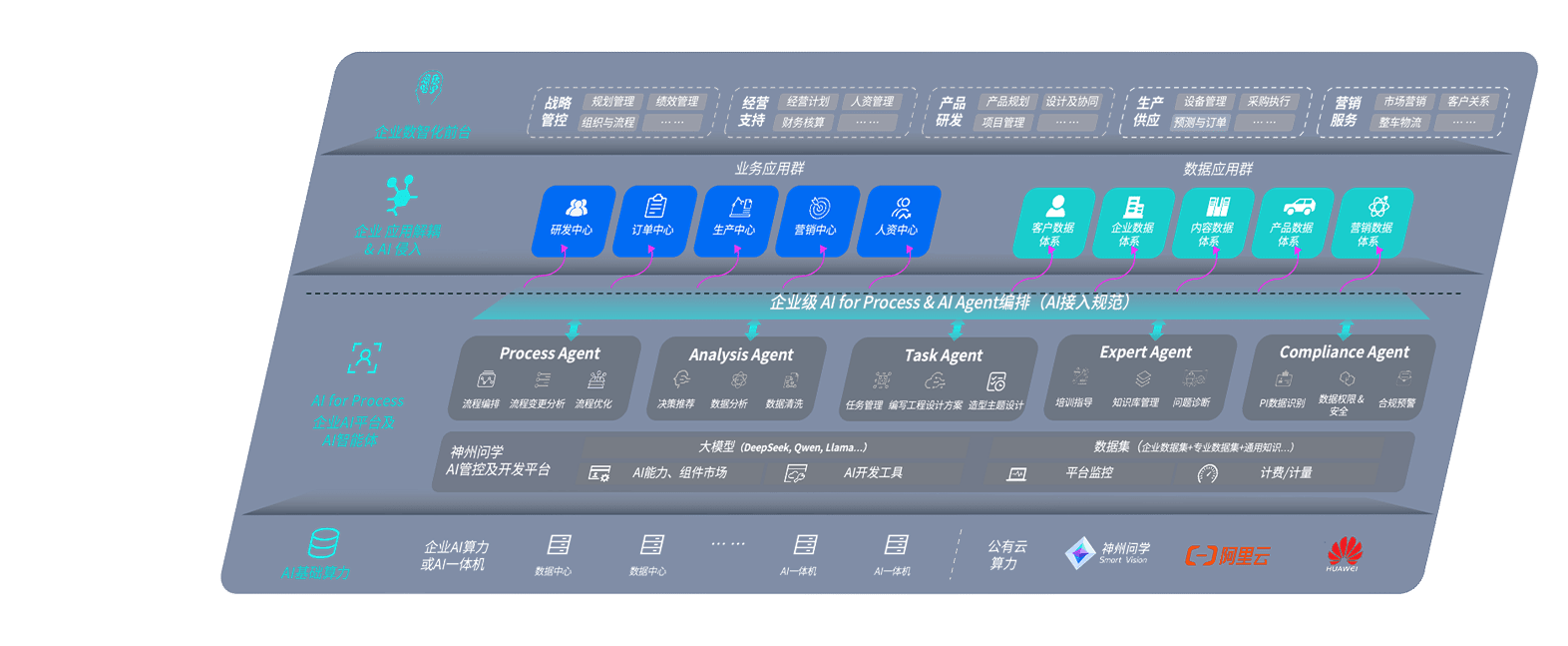 AG尊龙凯时问学智车解决方案是一套基于AI技术的汽车行业智能化系统,,覆盖从底层算力到顶层AI应用的全栈方案。。。。方案由算力层、、、、模型层和应用层组成:算力层,,,,方案支持多种一体机配置,,具备云端灵活部署、、、多云适配以及动态优化计算资源的能力;模型层,,,AG尊龙凯时问学平台版提供了企业级AI应用一站式构建与管理平台,,,支持基于后训练强化技术的汽车企业专属模型的训练、、、、评测和运营;应用层,,,AG尊龙凯时问学DeepSeek版提供包括超级员工、、、、智能招采、、、、智能营销、、、智能客服、、、AI for BI等一系列解决方案,,,可助力汽车行业实现数字化转型,,,,让管理更智能、、响应更敏捷。。