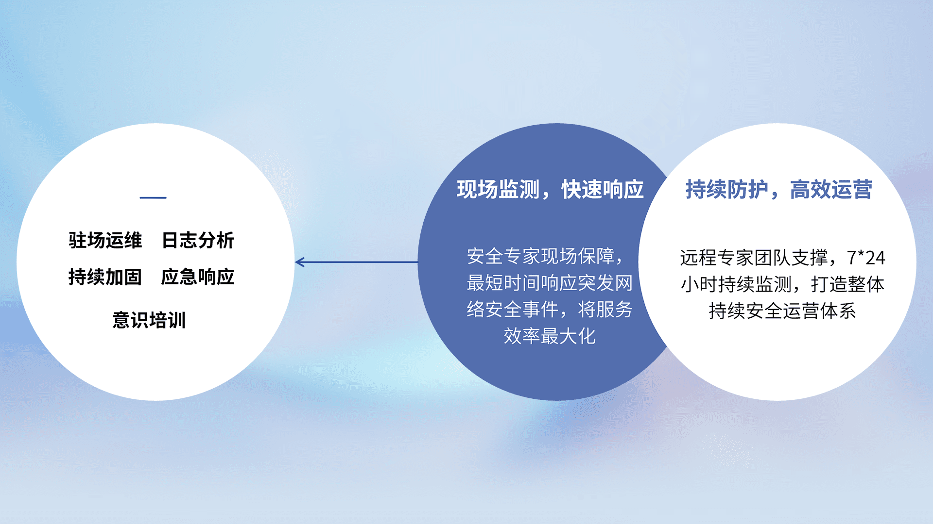 针对客户行业特性,,,,提供专属的一站式安全管理服务,,,,帮助客户全面感知网络空间威胁,,,,通过安全专家的线上、、、线下防护支持,,,实现风险闭环,,,,将安全保障常态化,,,,为客户打造常态化安全运维运营服务。。。